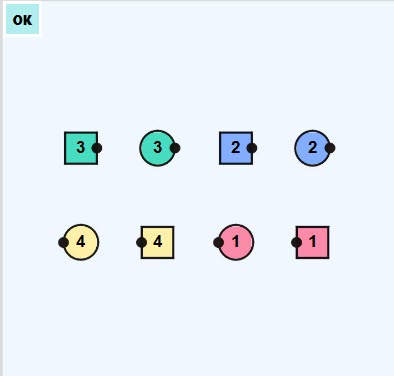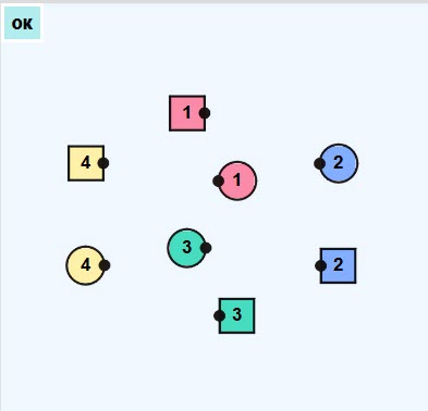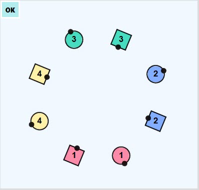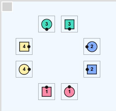 Facing direction is indicated by small black dots (their noses)