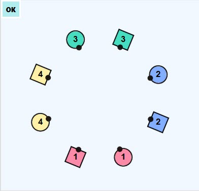 Couple Two (blue) are to the Right of Couple One